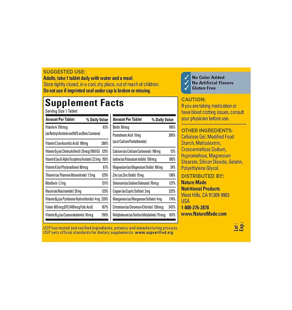 Nature Made Multivitamin For Him with No Iron, 90 Tablets, 90 Day Supply